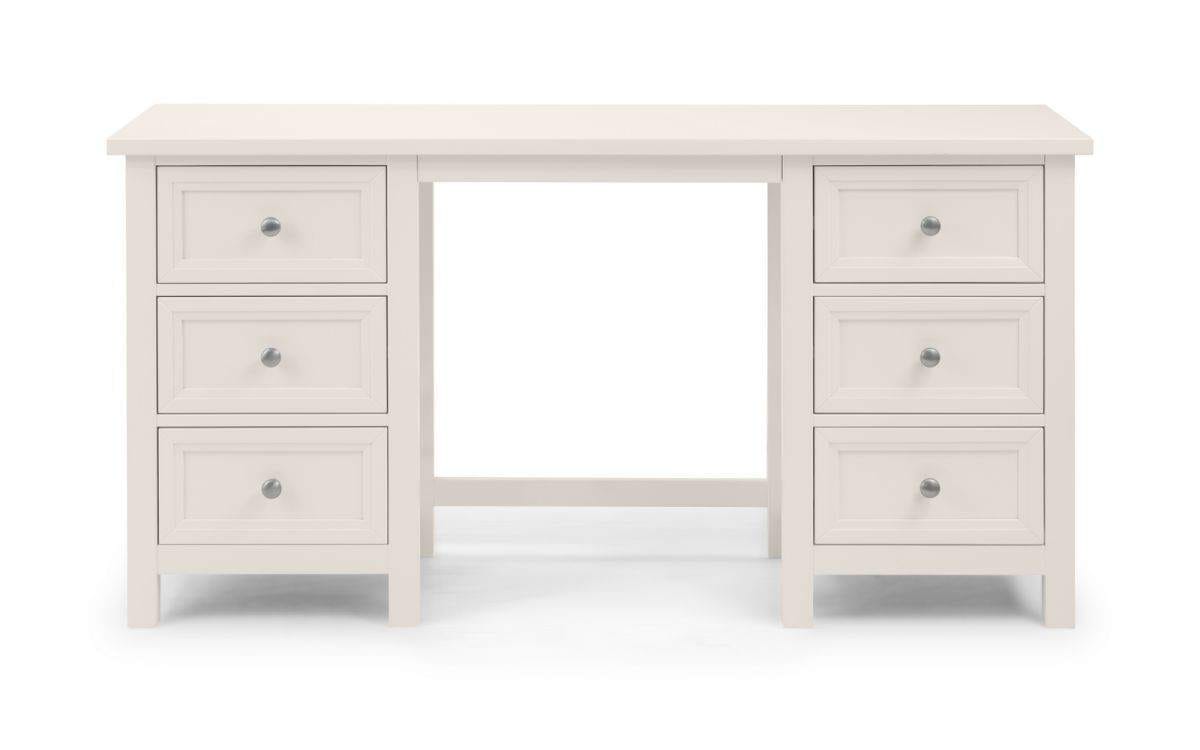 An elegant New England style wardrobe with two doors and one drawer. The combination of exquisite surf white lacquered finish with characteristic side panelling and detailed chamfered cabinetry makes for a soothing and refined aesthetic with timeless appeal, while delicate pewter handles add the perfect finishing touch. Panelled New England style with detailed chamfered cabinetry, Surf white lacquered finish with pewter handles, 2 doors + 1 drawer, Part of Julian Bowen’s Maine bedroom collection, Internal drawer dimensions – 78cm x 43.5cm x 19cm